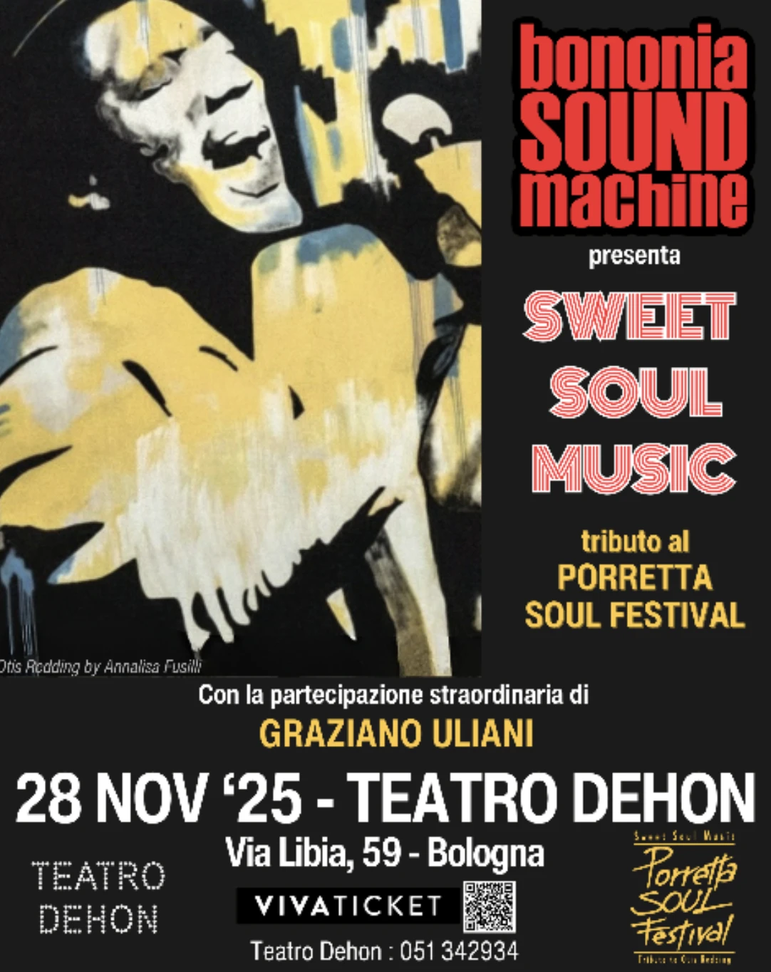 On 28 November 2025, the warmth of Soul music returns to vibrate on the stage of the Dehon Theatre in Bologna with “Sweet Soul Music”, a musical project by Bononia Sound Machine that pays tribute to the legendary Porretta Soul Festival, an international point of reference for lovers of “music of the soul”.